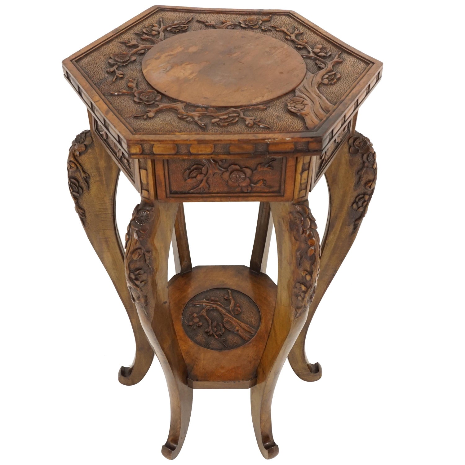 Antique Japanese Plant Stand Carved Lacquered Lamp Table Meiji Period B2179 For Sale At 1stdibs