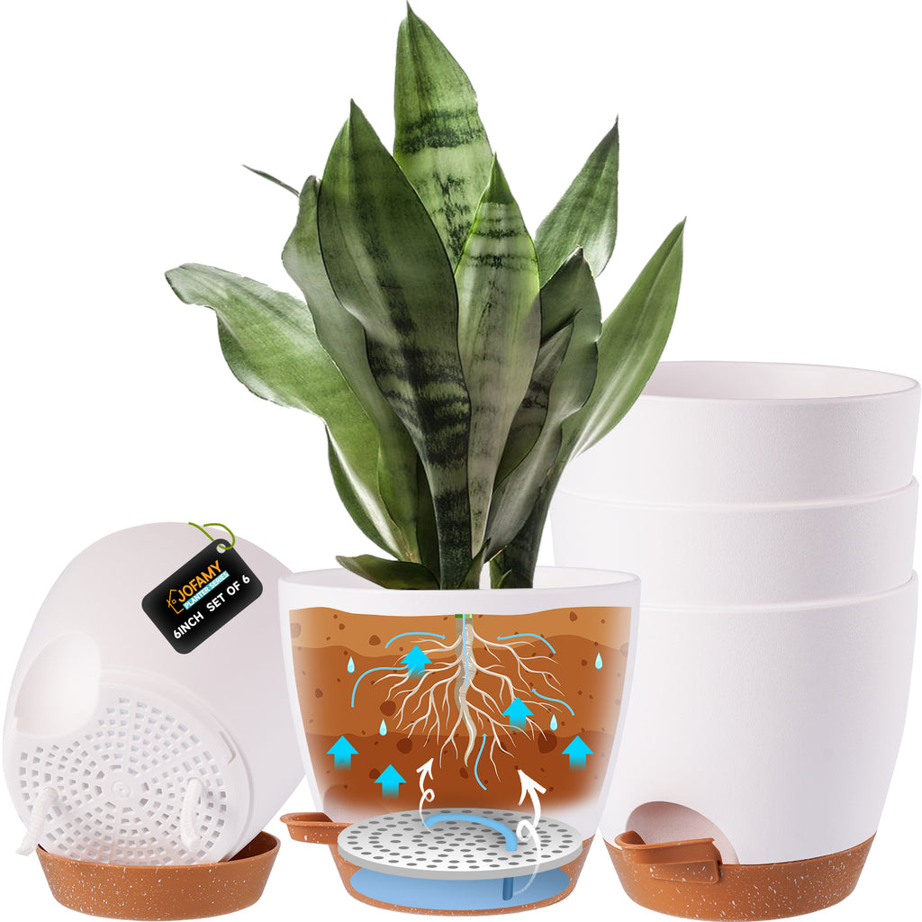 Jofamy 6 Inch Planter Pots 5 Pack Self Watering Planters For Indoor Outdoor Plants Plastic Plant Pots Set With Drainage Hole Decorative White Flower Pots For All House Garden Plants