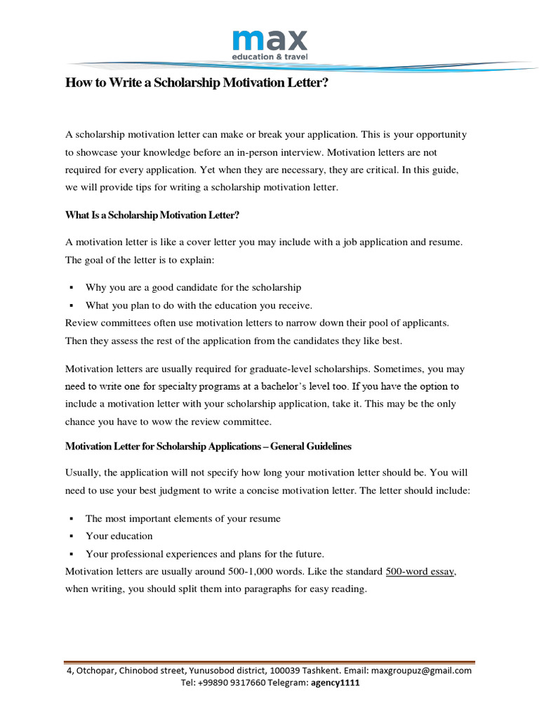 How To Write A Scholarship Motivation Letter 1 Pdf Resume Brainstorming
